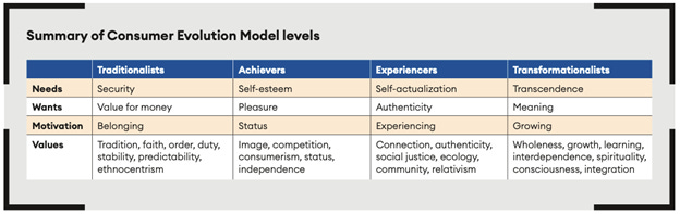In it you’ll see that after describing the four different stages of consumers –traditional, achieving, experiential, and transformational – we discuss how