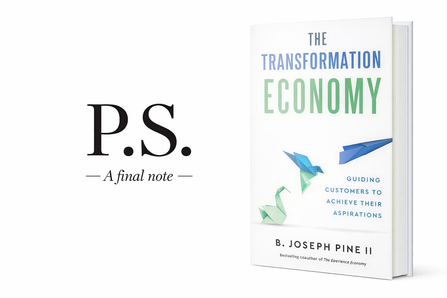 I do hope that came through, and here at the very end, I want to emphasize again that you, as an individual human being, are at the center of this book. So, yes, please embrace all the ideas, principles, and frameworks in this book to shift into the transformation business and enable your business to thrive as we shift into the Transformation Economy. But also embrace them personally. Understand the facets of your own identity. Determine the aspirations you individually have for your life, not just your work or your business, and how best you can achieve them. Discover your personal meaningful purpose and what transformations will enable you to fulfill it.